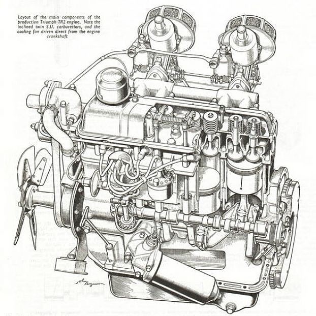TR3 Motor als Schnittbild und real